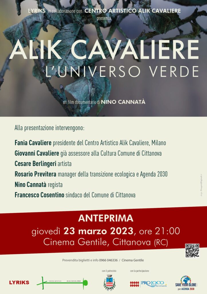 Arriva a Cittanova (RC) il film documentario โAlik Cavaliere, Lโuniverso verdeโ con la regia di Nino Cannatร in anteprima al โCinema Gentile” giovedรฌ 23 marzo 2023 ore 21:00.