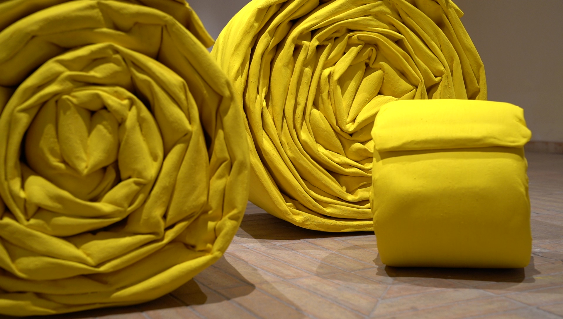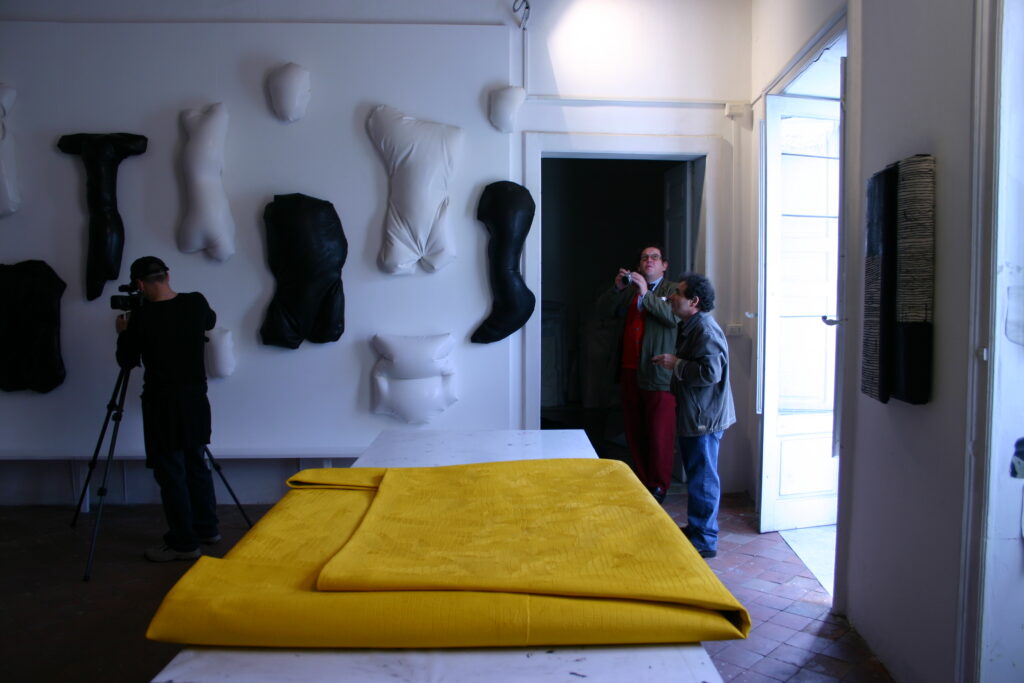 Si aprono squarci su importanti mostre personali, sulle parole di grandi critici d’arte, che commentano l’opera dell’artista e il suo particolare linguaggio, caratterizzato dai monocromi e dalle tele piegate. In un viaggio caleidoscopico, le opere del maestro dialogano con l’arte millenaria della Calabria e con i suoi paesaggi, contrappunto ideale di una materia originaria che risorge nella memoria.