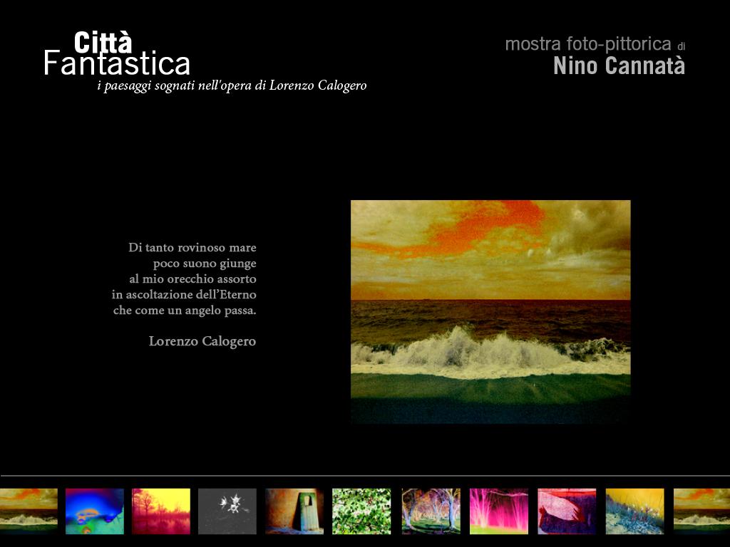 Lo spettatore è ospite di un luogo immaginifico, da visitare attraverso l’arte poetica di Lorenzo Calogero, un viaggio esplorativo nel fitto bosco dei versi, alla ricerca della Città fantastica, metafora mitica del labirinto, luogo misterioso, arcano, un’architettura dai percorsi molteplici, di fenditure che si affacciano su vedute sorprendenti, di echi. É lo spettacolo dello svelamento, degli innumerevoli orizzonti che la parola poetica cela in sé divenendo il cuore di un “ulteriore processo generativo” che si sdoppia e prolifera perché mostri le sue originarie dimensioni: il suono e l’immagine. I versi di Calogero abitano il teatro, il «teatro strano» della mente, dove le parole sono presenze vive e immateriali, risvegliano il gesto, la danza, il canto, la musica, le visioni.